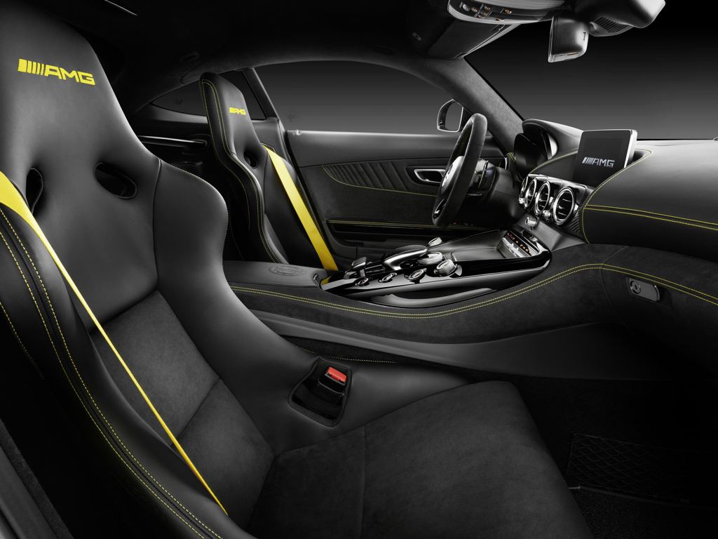 All of that, in addition to a massive body kit with large front splitter and a huge rear diffuser plus a fixed rear wing, means Mercedes AMG GT R is poised and ready to take on the likes of Porsche 991 GT3 and whatever the upcoming track version of the Ferrari 488 is called. The car is still rear-wheel-drive and has the same AMG SPEEDSHIFT DCT 7?speed dual-clutch transmission, but with 585 horsepower and 700 Nm of torque, and lighter weight, it can sprint from 0 to 100 km/h in 3.6 seconds and flat out reach 318 km/h.