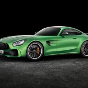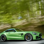 Dressed in the new “AMG green hell magno” the 2017 Mercedes AMG GT R is powered by an uprated version of the regular version’s 4.0 liter V8 with an extra 70bhp and a much, much nastier soundtrack. But increased power is only part of what makes the R a Green Hell beast. In true Black Series fashion, although it is not called that, the tracks have been widened on both axles, and the car’s been fitted with active rear-wheel steering, the nine-way adjustable traction control system and the adjustable coil-over suspension with additional electronic control.