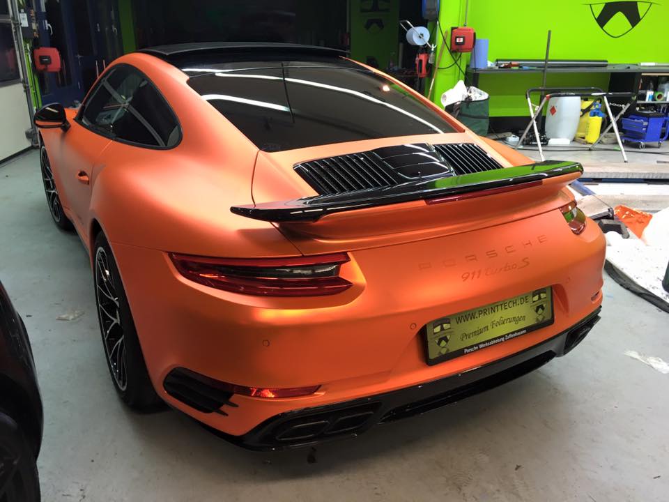 German premium wrapping company Print Tech seems to have a preference for understated darker shades, as seen with this menacing Audi RS6. But now in one of their more conspicuous works they have come up with an Orange Chrome Porsche 991 Turbo which is the polar opposite of their usual works.