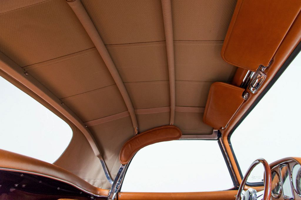 It’s a 300 convertible this model and boasts a brand-new color matched soft top, but a hard top is also included and we think it looks even better with that on. The best part of this car, however, is the interior which has been given a complete makeover with chrome and leather and a superb wooden steering wheel as well as super fine carpets. It also appears to have air conditioning on the evidence of that vent protruding from under the dashboard.