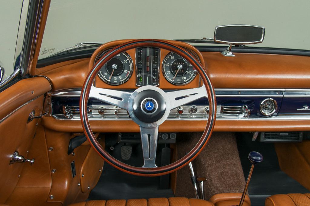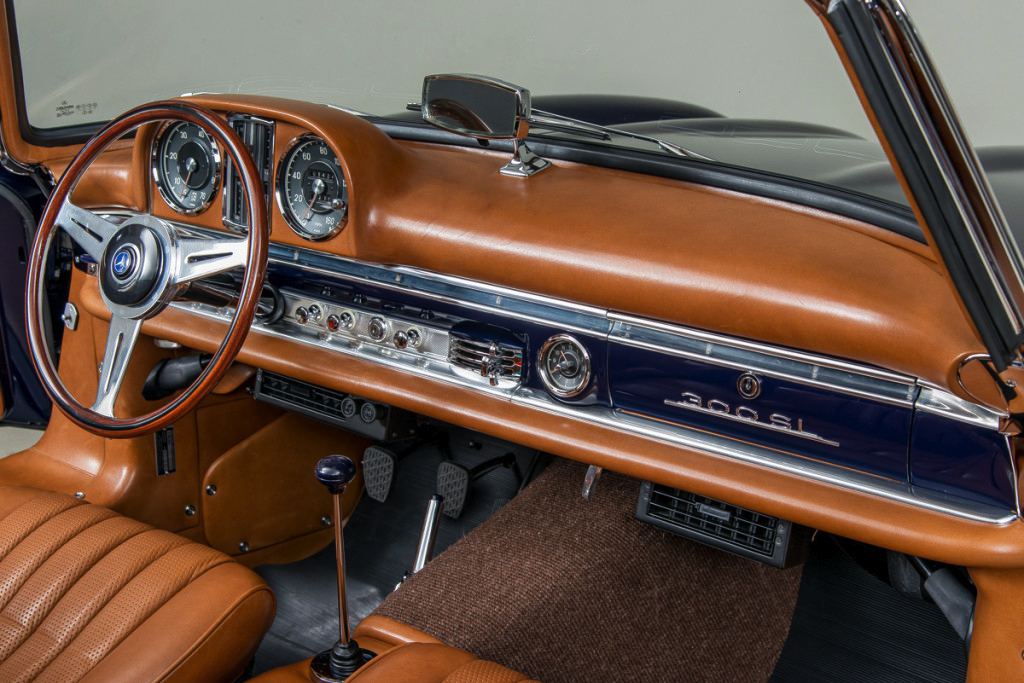 As you’d expect, this amazing 1961 Mercedes 300 SL is part of Canepa’s extensive collection. What’s more, it is one of those cars they have restored and improved themselves, as documented here in a single and HUGE photo. The car is finished in an unbelievably cool navy blue, a color that is also featured on the wheels and the dashboard, making this SL even more unique.