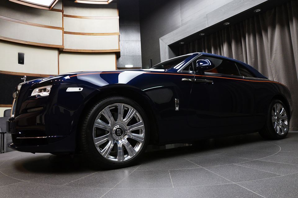Charles Rolls and Henry Royce probably never envisioned, when they put together Rolls-Royce Motor Cars, that someday their names would be on a navy blue four-seat convertible with an orange interior. But that’s what the company’s Bespoke department does these days, and someone in Abu Dhabi has ordered a Rolls-Royce Dawn in just this configuration.