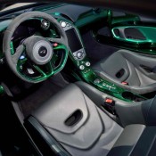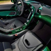 That begs the question why did the guy ordering this Green on Green McLaren P1 from the factory went for this color scheme. The car boasts a green carbon fiber body, green wheels, and green carbon interior, all built specially for this car by McLaren Special Operations. That dud is clearly someone else might share his love of color green, and he might not be disappointed because we know of at least one other dude with a thing for green McLarens.