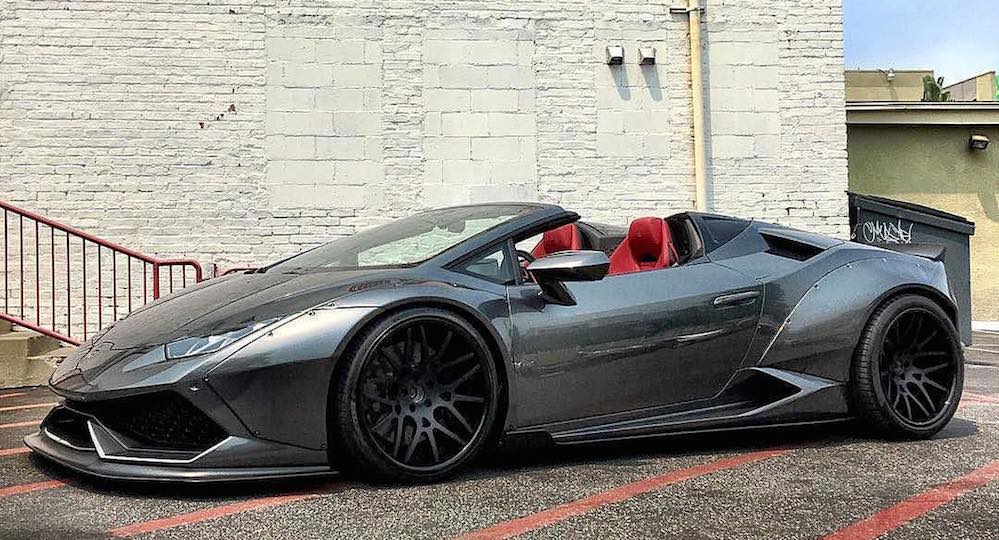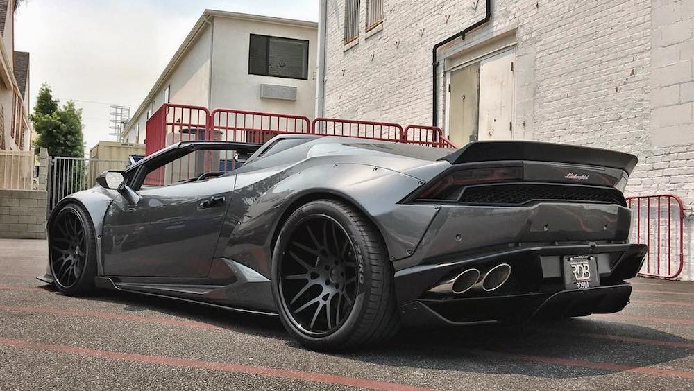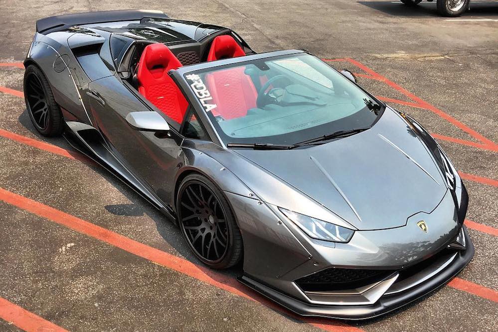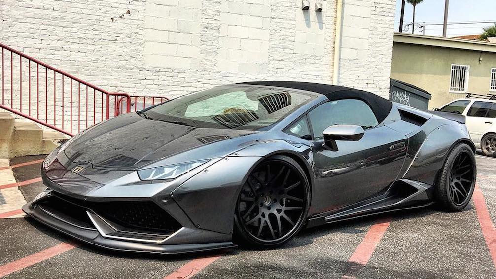 Ladies and gentlemen, what you’re looking at here is the world’s first Liberty Walk Lamborghini Huracan Spyder wide body. We have seen the coupe version of this bad boy before, but that car doesn’t hold a candle to this topless beauty with its Grigio Lynx paint work.