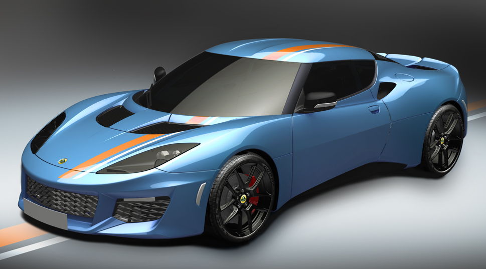 The strictly limited Lotus Evora 400 Exclusive editions also marks the 50th anniversary of the founding of the Lotus Factory and Headquarters in Hethel, Norfolk. So a hard-core Lotus fan this car is like the holy grail. To reinforce the sense of nostalgia, Lotus Exclusive has also a retro-inspired color scheme with blue and orange elements which is kind of reminiscent of the Gulf colors, and they are calling it simply the Evora Blue & Orange edition. That must mean the upcoming editions will also be called by the colors they feature.