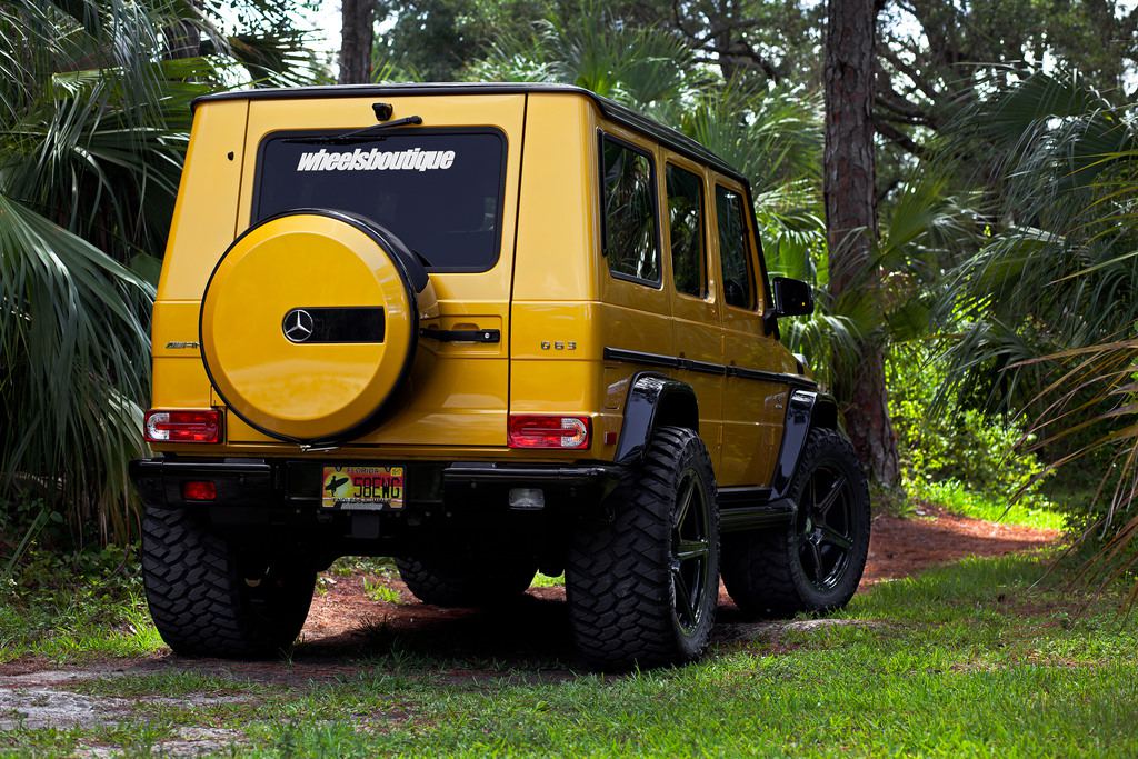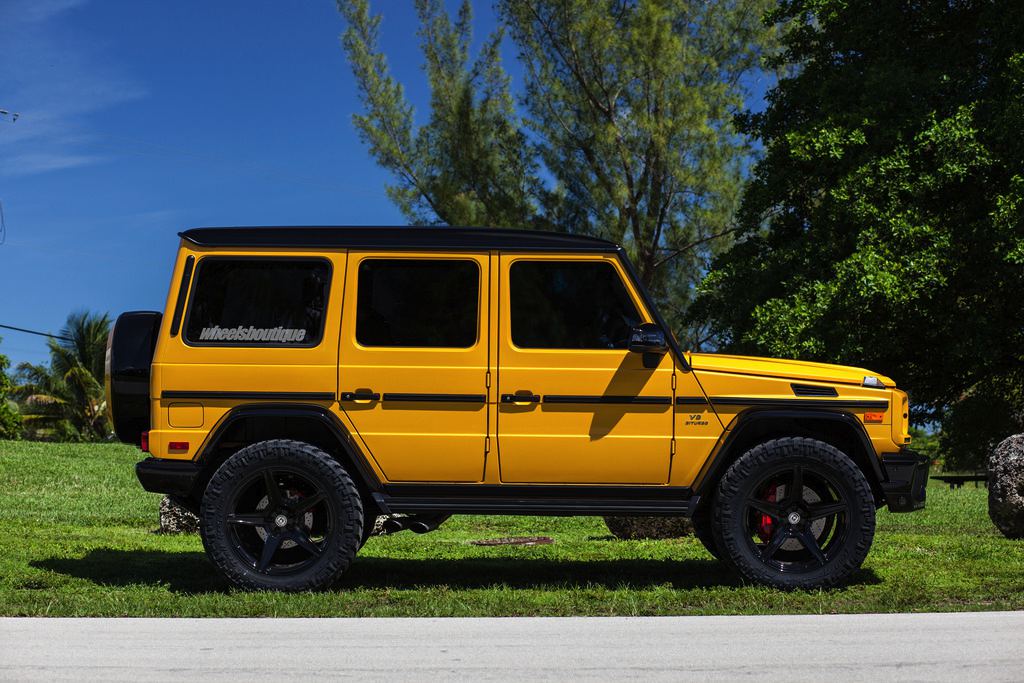 It’s actually doubly better in the case of this particular Mercedes G63 AMG because it’s a Crazy Color version with a radiant Solarbeam Yellow paint job and gloss black accents and details, as well as a few aftermarket goodies, chief among which a set of massive new wheels wrapped wit chunky off-road tires.