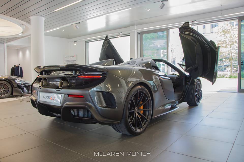 McLaren Munich is overtaking all the other representatives of the British brand in terms of the number of McLaren 675LT Spider models they are shifting. They were one of the firs to take delivery of a Solis Gold Spider. Then they complemented that with a black one, and now two more in Storm Grey and McLaren Orange.