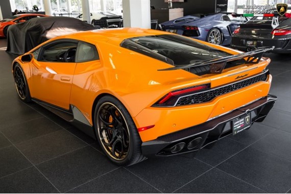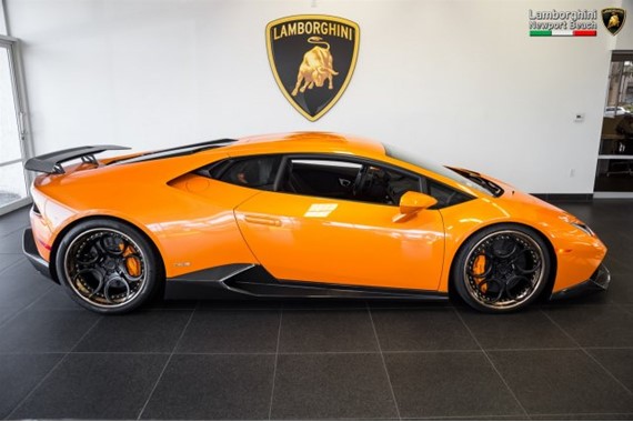 That’s a helluva lotta money, but then this supercharged Lamborghini Huracan is a helluva lotta car. Aside from the fact that this Arancio Borealis beauty with its Nero Ade leather is a 2015 model with only 1,266 on the clock, the car comes with a bespoke carbon fiber body kit consisting of front spoiler lip with side flaps, side skirts, custom rear diffuser and fixed rear wing. It is almost there to look like an Aventador SV.