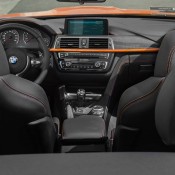 The paint job alone would have made the Fire Orange BMW M4 Convertible a pretty unique car. You don’t see this paint job very often even on the coupe version, let alone the convertible. This shade of orange was introduced for a limited edition of the E92 M3 and is used these days only on special commission models. Besides that this M4 also gets Kyalami Orange interior accents and stitching on the Merino leather as well as M Performance exhaust and DCT knob.