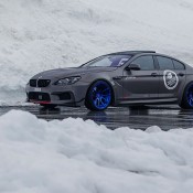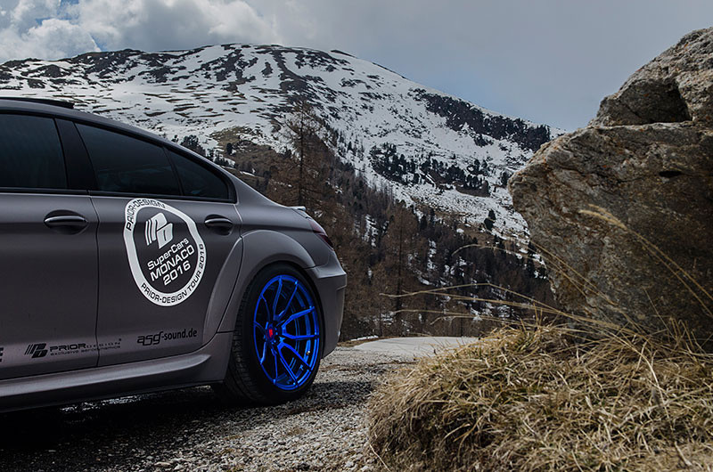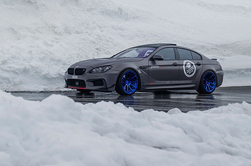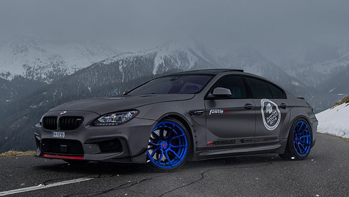 The styling package is then complemented with a set of Prior Design wheels finished in blue and wrapped with 245/30-20 and 295/30-20 tires on the front and rear, and then with an Eibach lowering kit that drops the car by 25 mm on the front axle and 20 mm on the rear. Another mechanical upgrade worth mentioning is a power kit including chip tuning and a Suprsprint sport exhaust system which together boost the output of this BMW 6 Series Gran Coupe, a 650ix model, from 450 to 570 horsepower.