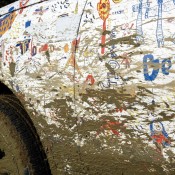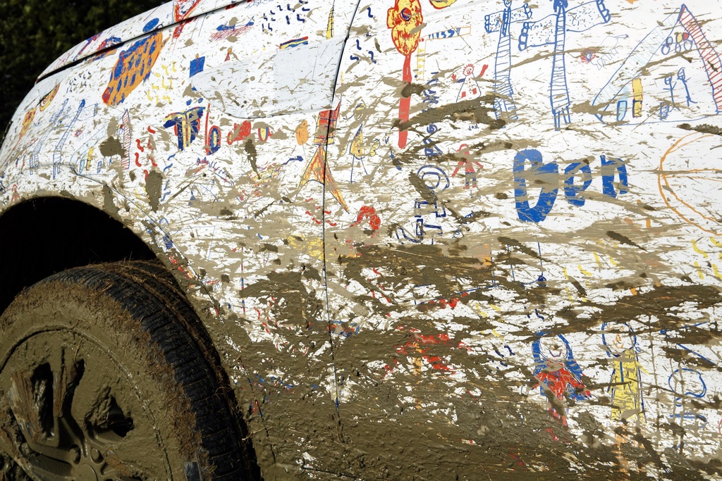 To put this in perspective, and also use it as to score some publicity for the new Land Rover Discovery debut at the upcoming Paris Motor Show, LR has come up with a new teaser featuring a one-off creative camouflage designed in part by the children, aged between five and nine, who helped with the development. They then topped it off with a thick layer of mud and as a finishing touch sat on it to completely disguise the car.