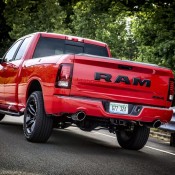 2017 Ram 1500 Night Package is based on the Sport trim level and inherits that model’s black-bezel bi-functional projector headlamps with LED marker lights and black-bezel tail lamps, as well its equipment list which includes high-back heated cloth bucket seats with 10-way power adjustment, power-adjustable pedals and automatic temperature control with dual-zone climate control.