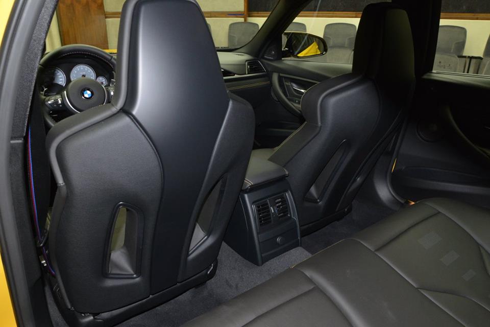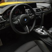 The Competition Package on Speed Yellow BMW M3 consists of new springs, dampers and anti-roll bars, and reconfigured driving modes (Comfort, Sport and Sport+), as well as revised Adaptive M Suspension software, Electronic differential and the Dynamic Stability Control and a power boost to 450 horsepower. These changes make the M3 sharper and better to drive on the race track, but they may rob it of some of the ride comfort which is totally negligible.