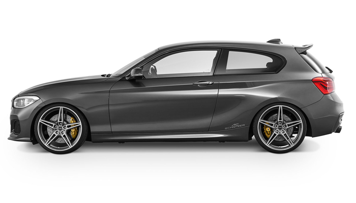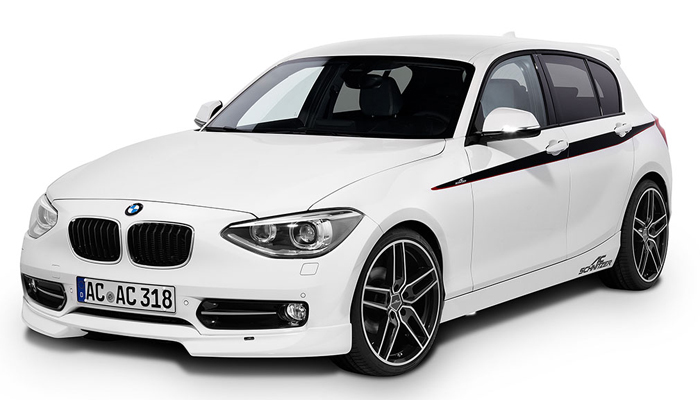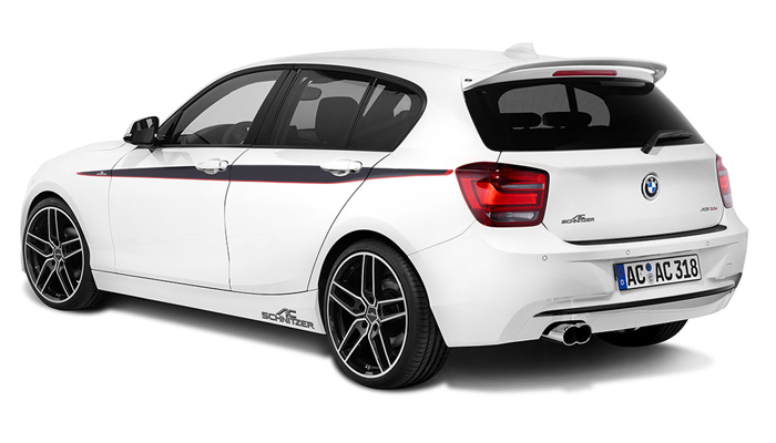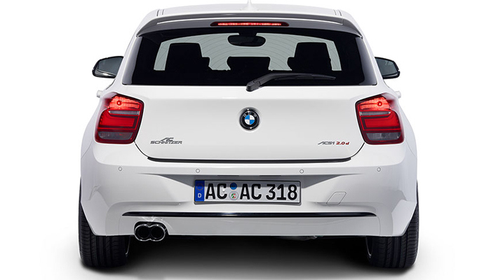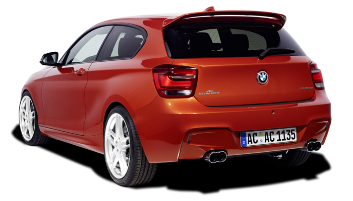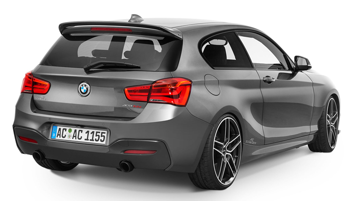 The tuning program for AC Schnitzer BMW ACS1, in terms of power and performance, includes the addition of large intercooler, modified software, and a custom exhaust system with 2x lambda sensor connections, 200 cell motorsport catalysts, and large 76mm tubes. In the case of the 120d model these mods result in an output of 218 hp and 455 Nm of torque (standard 180 and 380). AC also offers various aero parts for the 1 Series including a one or two piece front spoiler for cars with or without the M kit, rear roof spoiler, and new tailpipe designs. As always, there is also a wide range of wheels to choose from and lowered suspension to go with it.