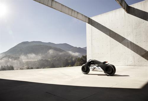 With a black frame triangle, white lines and a boxer engine arrangement, BMW Motorrad VISION NEXT 100 certainly has the look of a Bimmer bike, but it also benefits from advanced features that give the “Next 100” in its name some substance. It has something called Flexframe or frame-assisted steering which allows the bike to be steered without the various joints found on today’s motorcycles. Its matt black textile frame not only gives it the look of a naked bike, it is designed to shield the rider from wind. And as for the engine, though it looks like a boxer unit it’s actually a zero-emissions drive unit whose outward appearance changes depending on the circumstances. It extends itself on the move to help with the aerodynamics.