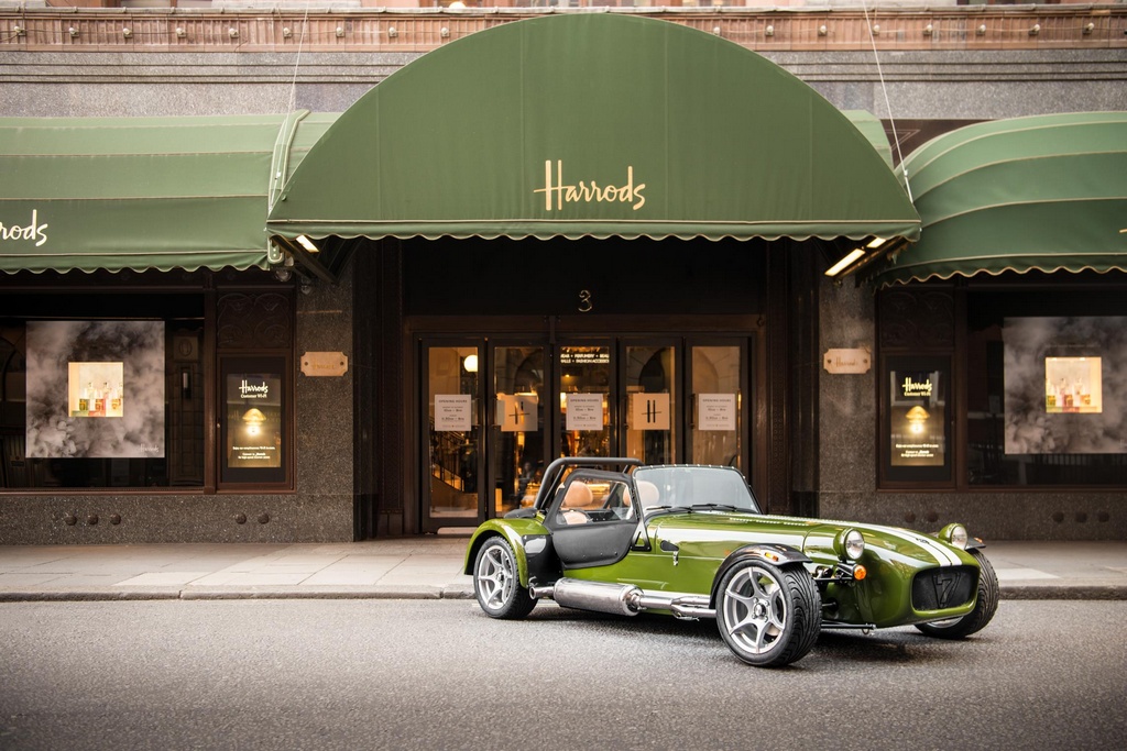 The demand for personalized cars has reached the very edge of the market and even a car maker like Caterham, famous for presenting their products in kit form, has to have a bespoke program to keep up. They have responded by launching Caterham Signature personalization program, and came up with a special edition called Caterham Seven Harrods to mark it.