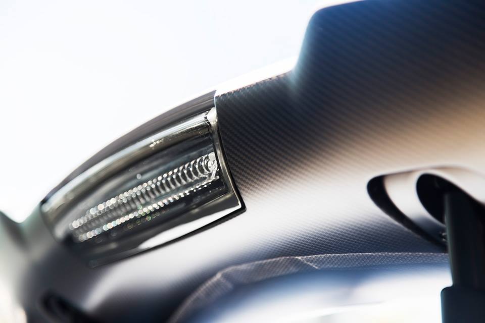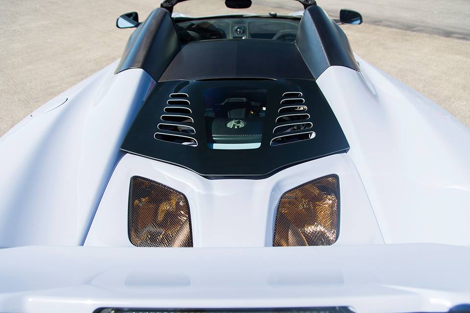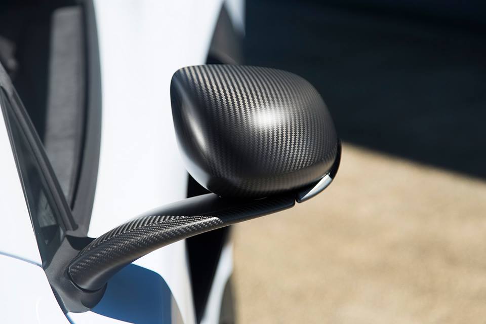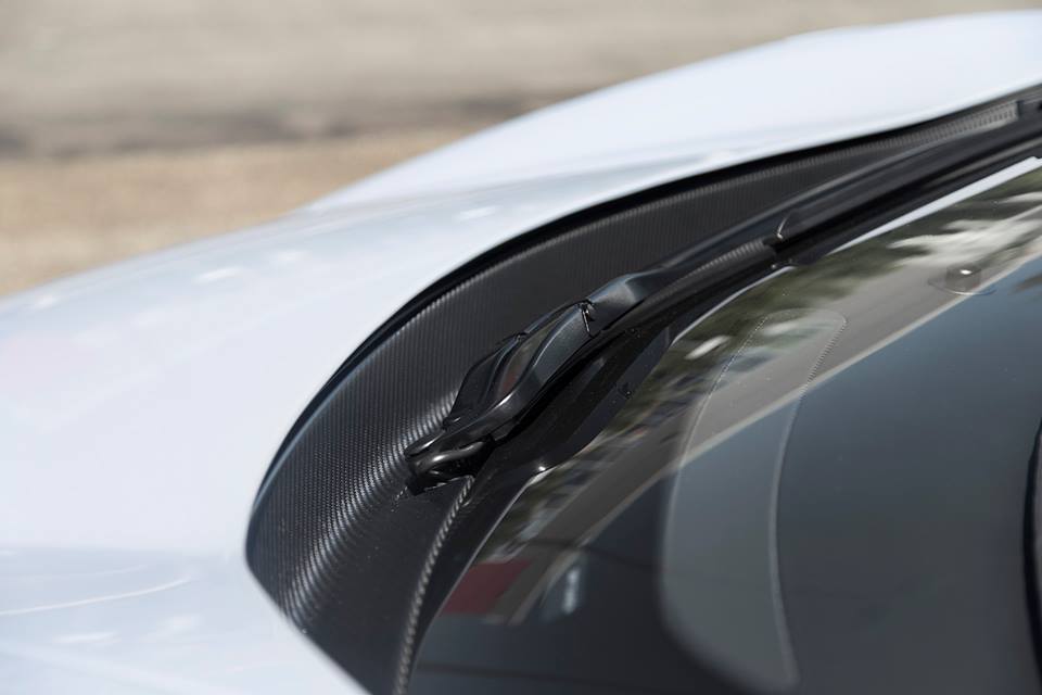 As for the exposed, sating-coated carbon fiber parts on the exterior, they include the retractable hardtop, front bumper, side intakes, fender louvers, wiper cover, mirror arms and mirror covers, engine covers, rear wing, and rear bumper. The Eagled-eyed onlookers have already spotted the pure gold exhaust heat sheilds peering through the rear engine bay. It’s another MSO option and a tribute to the iconic F1.