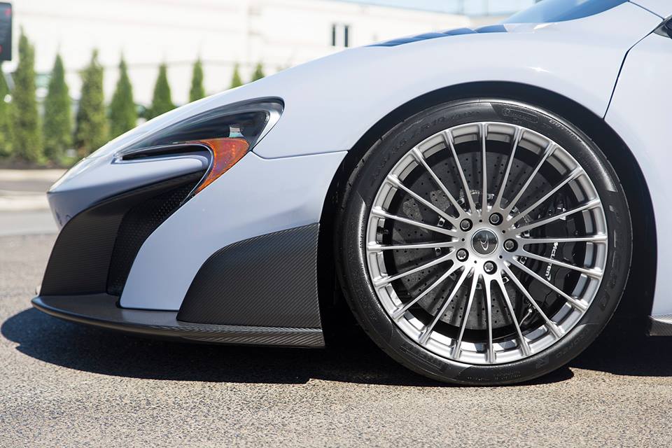 Let’s begin with the exterior and that superb paint job which, to be honest, wouldn’t work as well on any other car. It is a unique shade of grey with very weak substance but a special glow that goes well with the lines of the car and complements the carbon fiber detailing on the exterior nicely. The paint work also puts in perspective the choice of wheels. No other wheel design would have worked so brilliantly on the Ceramic Grey McLaren 675LT Spider.
