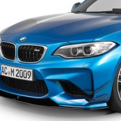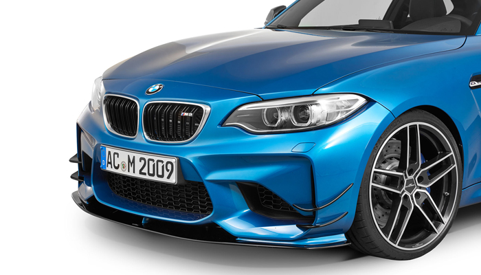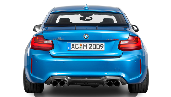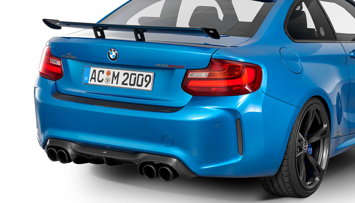 As for the visual stuff, AC Schnitzer BMW M2 gets a body kit consisting of front splitter, carbon front side wings, carbon mirror cover, rear roof spoiler and rear wing, made from composite materials, such as PU Rim or carbon. For the inside you get special floor mats, fancy gear and handbrake knobs, and sport pedals.