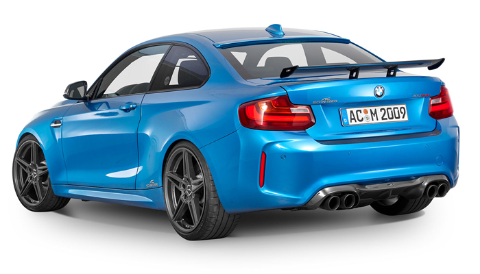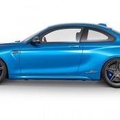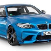 In terms of performance AC Schnitzer has equipped their M2 with a custom valve-controlled exhaust system, a new intercooler and some software tweak, the net result of which is a jump from 370 to 420 horsepower. The dynamics of the car are improved through the use of RS adjustable suspension and lowering springs (35mm) and AC wheels available in a wide range of designs and paint finishes.