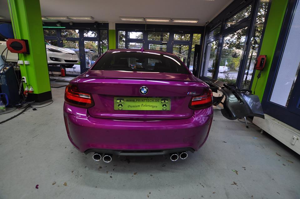 So far almost all BMW M2 tuning kits we’ve seen had to do with body kits and some with power upgrades. Now Print Tech kick starts the wrapping game for this car with this rather amazing purple BMW M2 they’ve just finished working on.