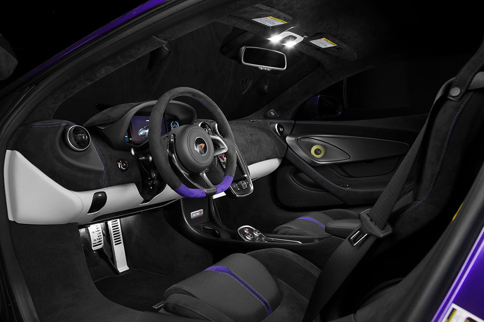 Delivered by McLaren Toronto, the Mauvine Blue McLaren 570S is a truly unique bit of kit what with the exclusive paint job and an even more unique interior design. You would think that with the 570S being the cheapest McLaren of them all people won’t care much ordering special treatments for it, but turns out it is not really about the price, but having a McLaren that looks as different as possible from your neighbor’s. So this 570 gets a Mauvine Blue exterior and accents in the leather and Alcantara interior in the same color. The dash is two-tone black and white with contrast stitching, carbon fiber flows on the center console and door cards, and the seats features leather inserts with blue accents and stitching. There is also a bespoke steering wheel styled in the same manner.
