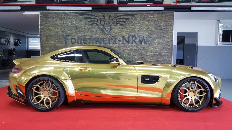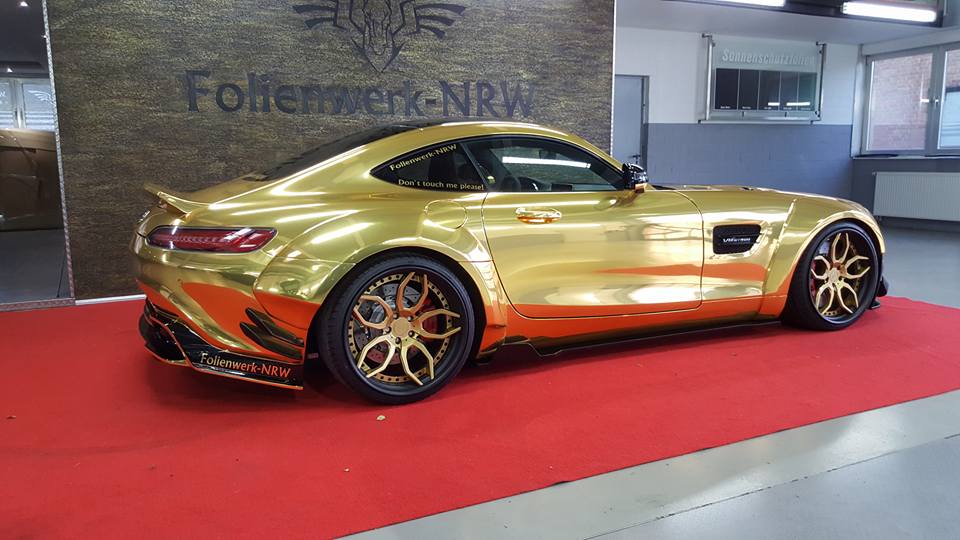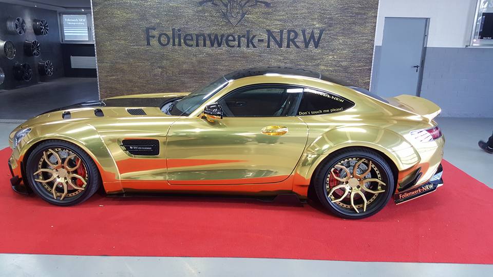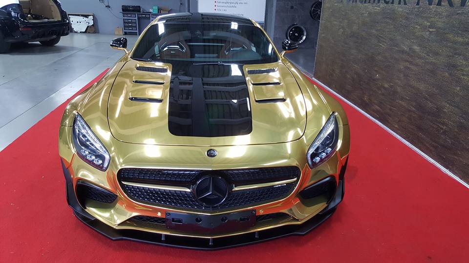 As you may know we are not big fans of chrome or gold here at MW, but the thing about Prior Design AMG GT is that the car is so brash and in-your-face even in black that it doesn’t really matter if you paint it gold, or green, or pink. The wrap just makes it pop a little bit more and shine with more vigor and shimmer.