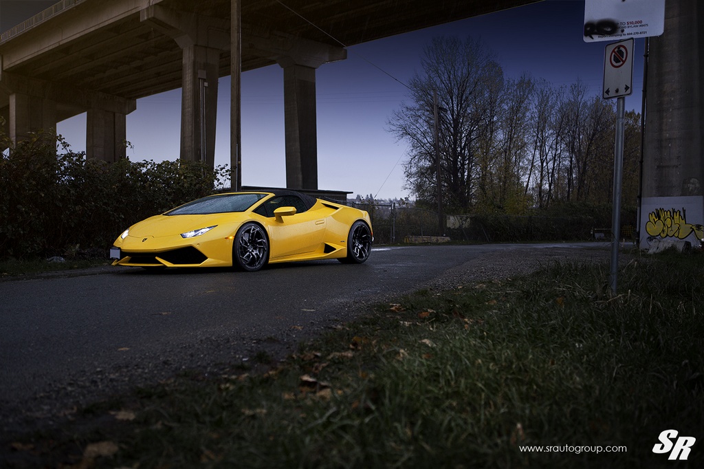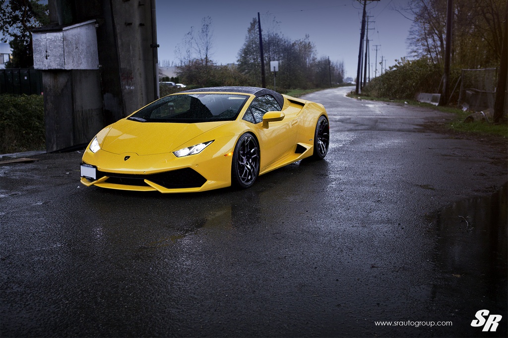 Well, we say tuning treatment, but all this Yellow Huracan Spyder gets from the boys at SR Auto Group is a set of PUR Wheels. They are rather exquisite rims though, and they add a sweet touch of luxury to the Lambo’s blend of sport and aggressiveness. SR Auto does not mention anything about the suspension, but we seriously doubt those wheels sit like that with the standard springs.