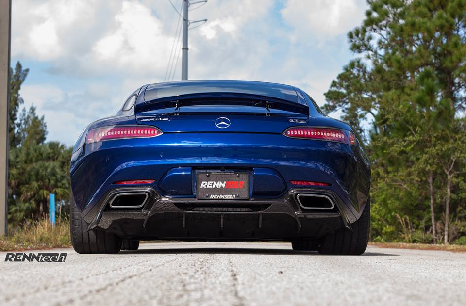 These are rather profound changes and it comes as no surprise that they result in a fairly decent upgrade to 611 horsepower and 620 lb-ft of torque. It also explains why for this particular RENNtech AMG GT they went to the trouble of adding a stylish aero kit. It’s not a substantial one and only includes three carbon fiber parts – front splitter, side rocker panels, and rear diffuser – but the effect they have on the overall looks of the car is pretty awesome.