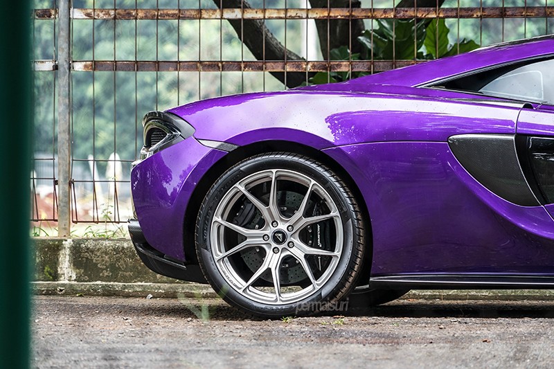 Granted, it looks purple, but Mauvine Blue McLaren 570S features one of the most special paint jobs the British automaker has in its pallet. It is also featured on the higher end models including the P1. But beautiful though it is, this paint work makes it difficult picking the right wheels and the right color for those wheels. But with those Vorsteiner V-FF103 wheels Permaisuri seems to have hit the nail on its head. The rims measure 20 inch in diameter wrapped with Pirelli P Zero Front 245/30-20 Rear 305/30-20.