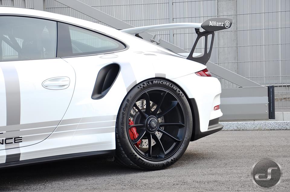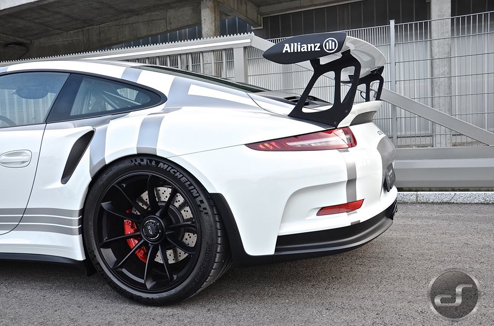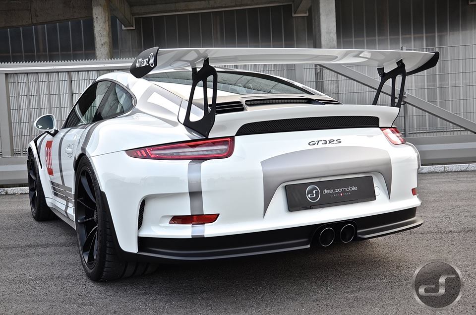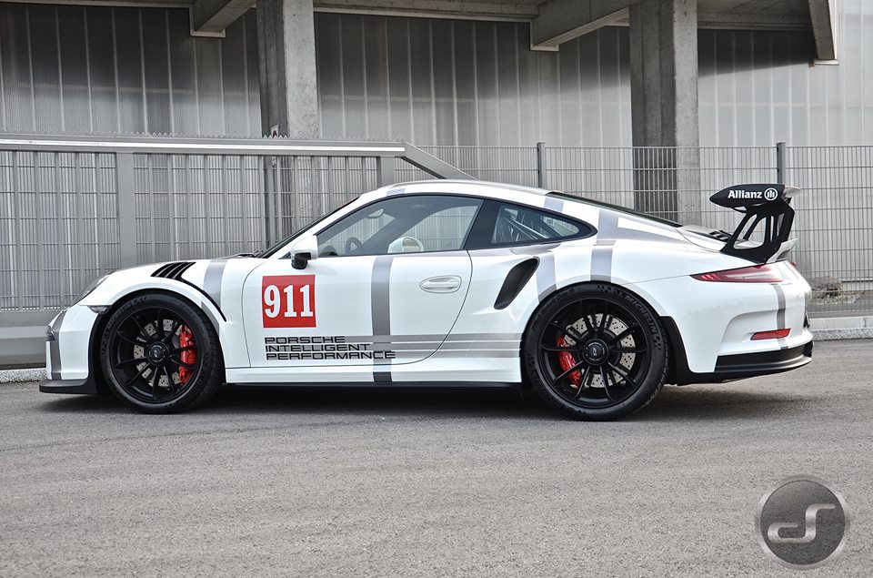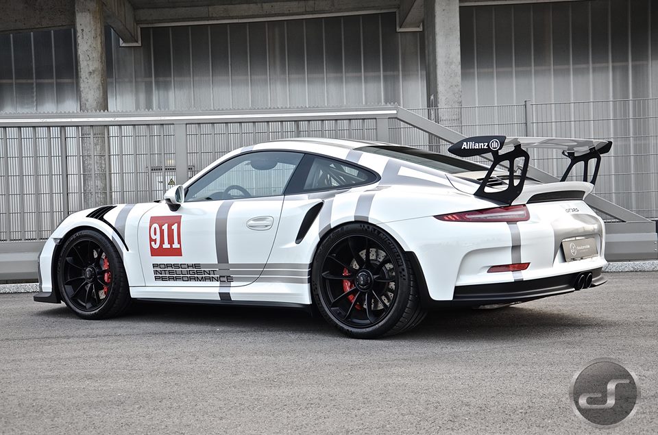 You may recognize this livery from Porsche’s own hybrid racing car, the 911 GT3 Cup. Here though, the guys from DS Automobile of Switzerland have given the racing outfit to a road-going Porsche 991 GT3 RS. That is fair enough, seeing as the RS is basically a race car with number plates. And we have it does look rather good.