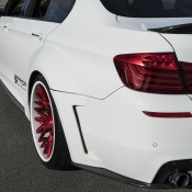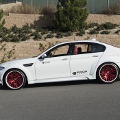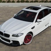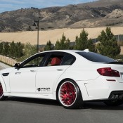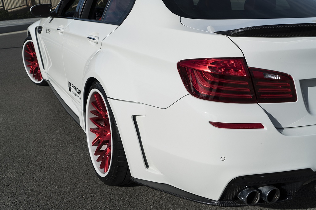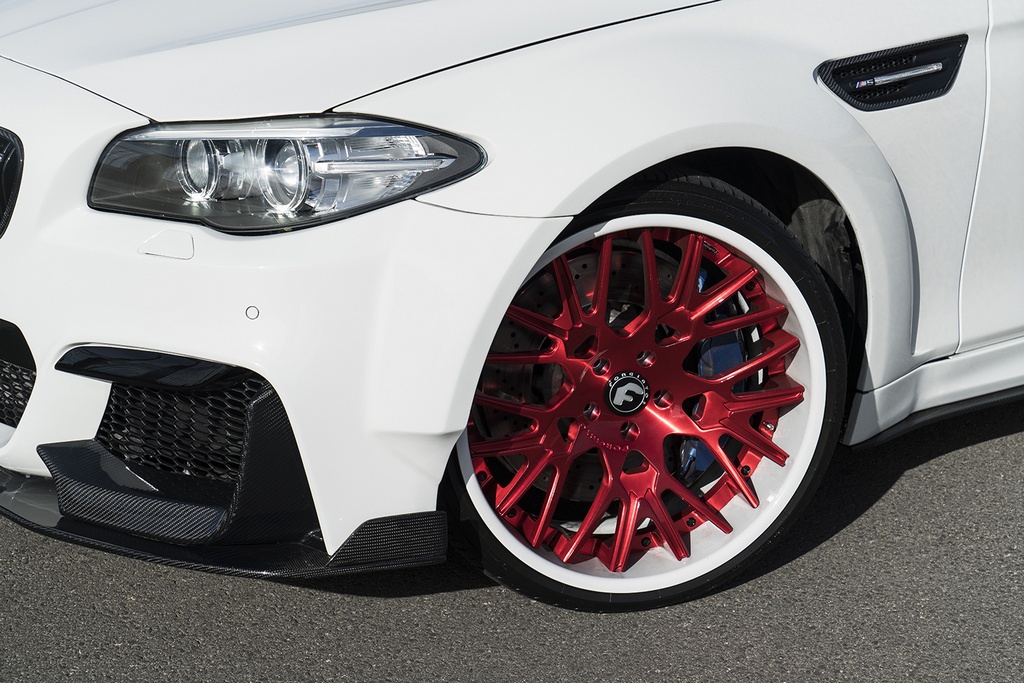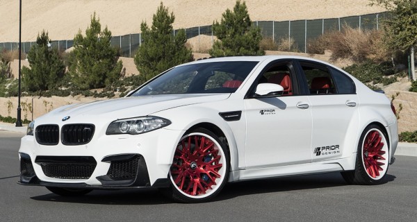 Red wheels seem to pretty hot at the moment, at least in America. This Prior Design BMW M5 is the second car we see this week equipped with red Forgiato wheels, although on this one red rims are only used on one side of the vehicle, which is a bit odd.