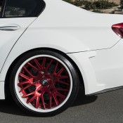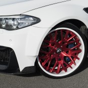 In any case, although we are not huge fans of red wheels – or any other brashly colored wheels, for that matter – we have to say the combination of white paint work, black accents and aero parts, and the red of the wheels has resulted in quite a spectacular finished product. What’s more, the red rims match the red interior leather on this bad boy, so the whole thing looks even more together and well-thought-out.