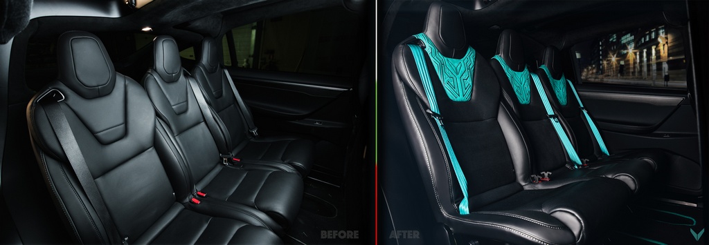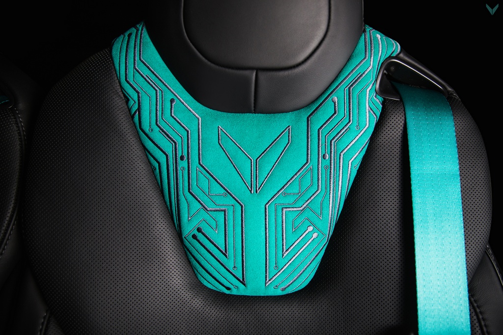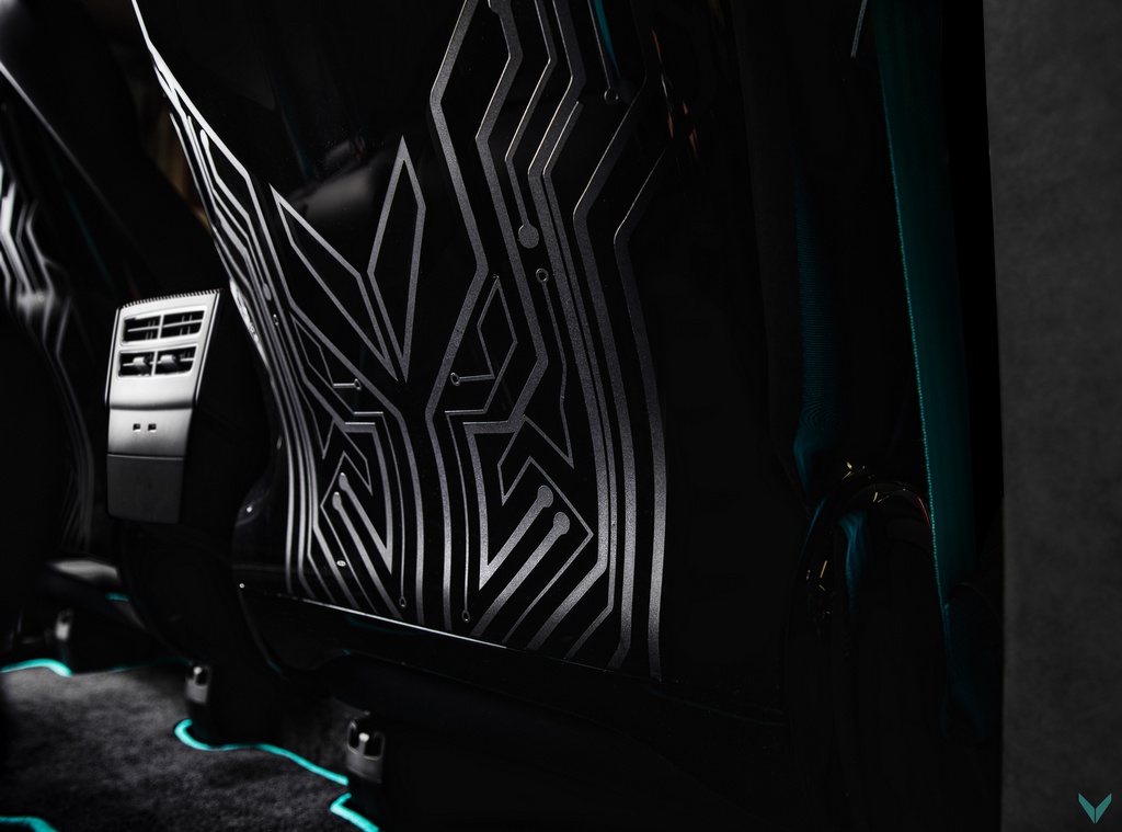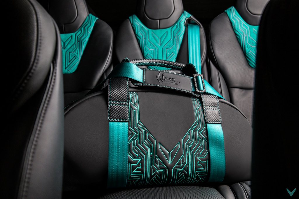Vilner Tesla Model X uses turquoise as the main highlight of the interior because the tuner believes it is ‘the color of electricity’. This rather brash shade of blue/green is found on the seat belts and the edging of the carpets as well as the back of the seats, and they are complemented with circuit board pattern graphics embroidered onto the seats and parts of the dashboard. These may be a little on the nose, but hey, it’s their first crack at a car like this.