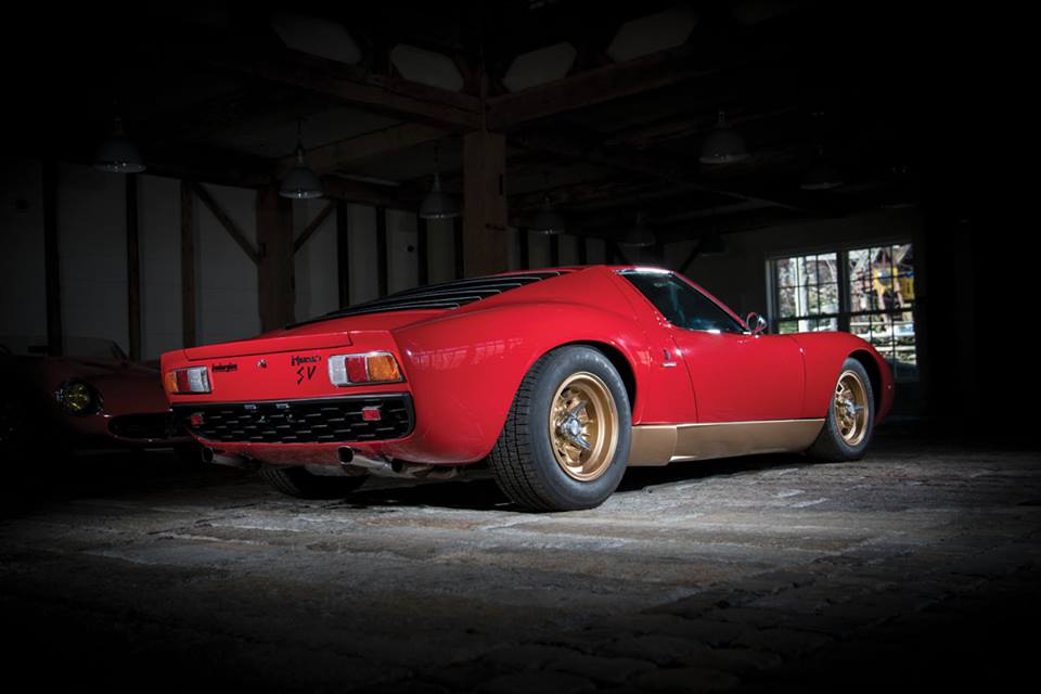 To be sold at RM Sotheby’s Arizona auction in January 2017, the Rosso Arancio 1971 Lamborghini Miura P400 SV with the period gold-colored sills and wheels is a late-model American-spec car with many upgrades compared to the earlier versions, chief among which “split-sump” lubrication system which is a lot more reliable than the single system the car used before and standard air condition, although a 70’s Lambo air con is not something you can rely on for doing much conditioning.