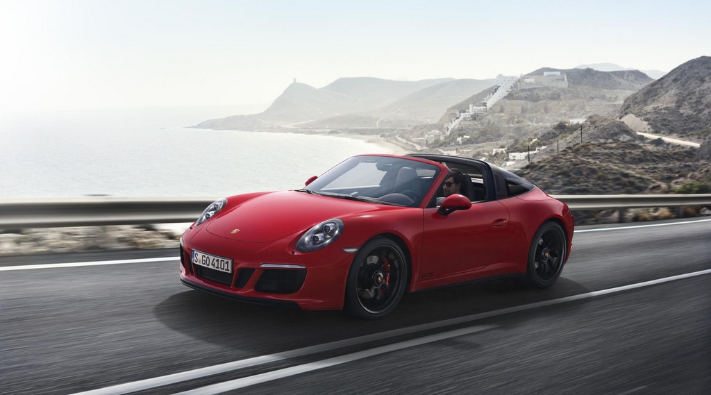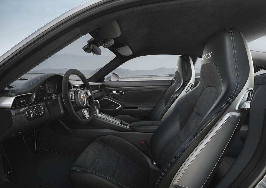 In terms of mechanical features, the 2018 Porsche 991 GTS models – available in Carrera and Carrera 4 variants and in Coupe, Convertible, and Targa guises – feature a 3.0-liter flat-six cylinder with larger turbochargers good for 450 horsepower and 405 lb.-ft. of torque. Standard are a seven-speed manual gearbox, although you really should get the optional PDK, Porsche Active Suspension Management (PASM), Sport Chrono Package including new Porsche Track Precision App, sport seats, leather and Alcantara, GT Sport steering wheel, and brushed aluminum interior trim anodized with a black finish.