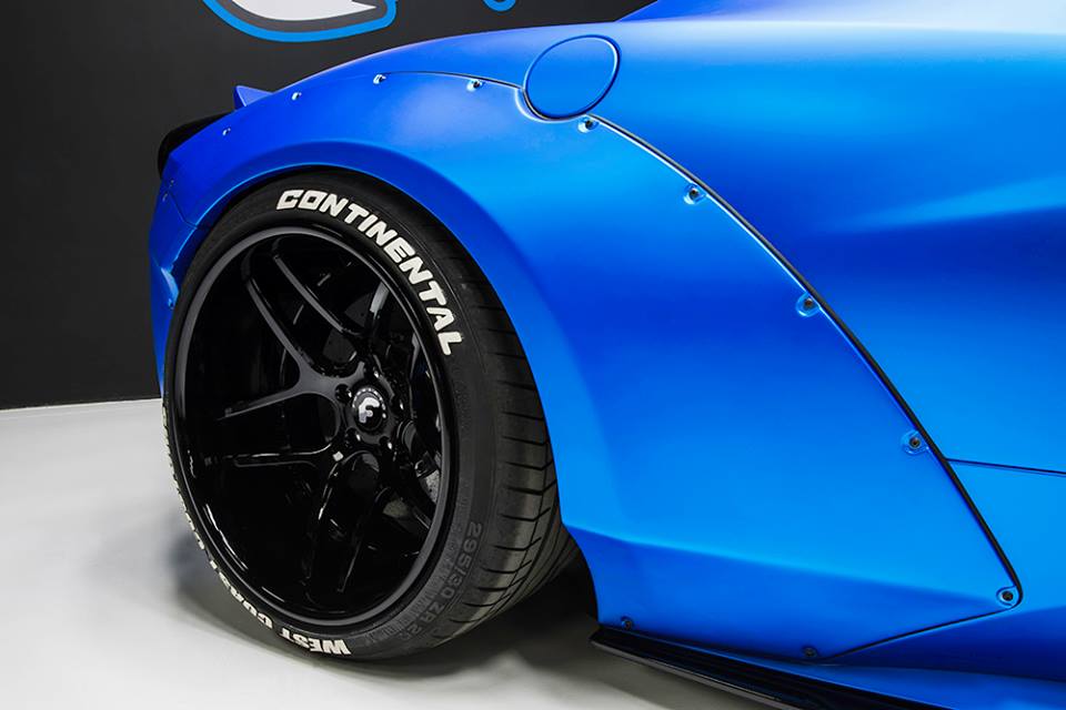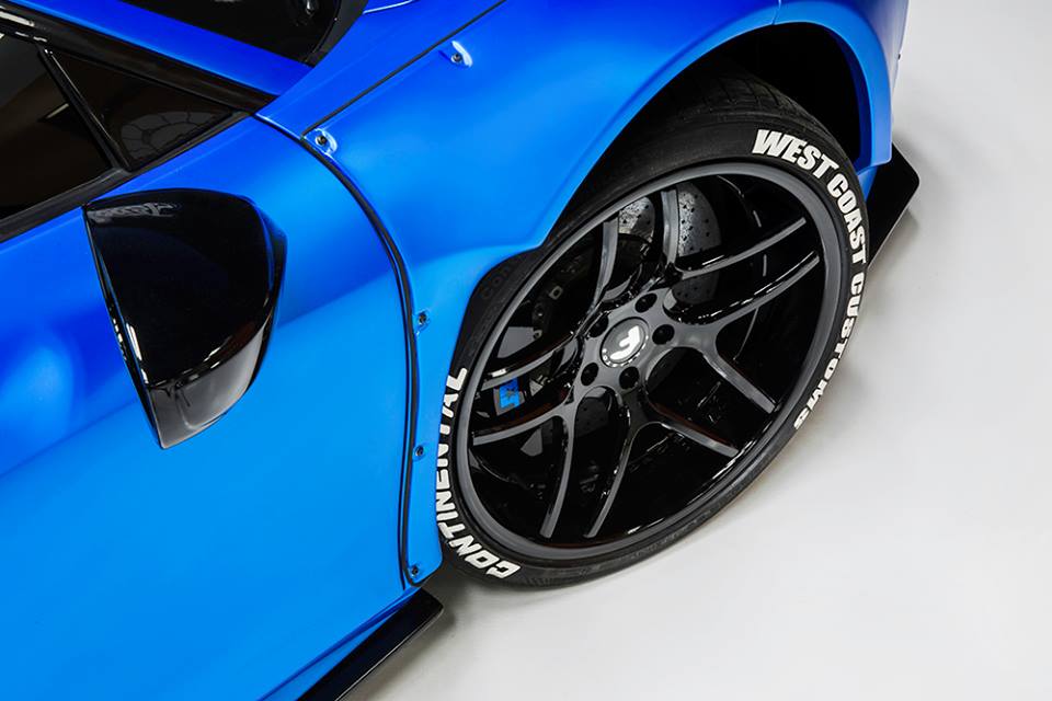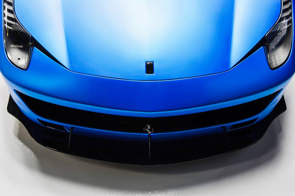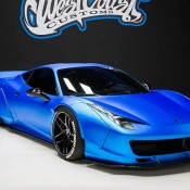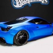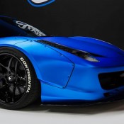 JB’s Liberty Walk Ferrari 458 wide body is a nice tuner car and one of the most nicely specced LB-Works 458s we’ve ever seen. WCC has done a good job with the installation of the big kit – which includes custom fender flares, front splitter, side skirt splitter and rear wing – and the wrap, which is a one-of-a-kind frozen blue chrome (original color white). The car also comes with exclusive leather interior, a top-notch 2000 watt stereo with a 10 inch subwoofer, and a set of 20″ 3-piece Forgiato Dieci-ECL wheels.