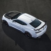 The 650 horsepower, manually-geared Chevrolet Camaro ZL1 1LE comes with a carbon fiber rear wing, specific air deflectors and dive planes on the front fascia, lightweight Multimatic DSSV dampers front and rear and adjustable ride height, lightweight forged aluminum wheels with Goodyear Eagle F1 Supercar 3R, and some weight saving measures such as reduced thickness rear glass and a fixed-back rear seat, good for a total 60-pound (27 kg) lower curb weight than a standard ZL1 Coupe.