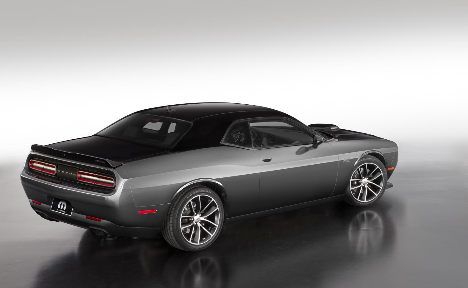 Among the highlights of the exterior on Mopar ’17 Dodge Challenger one can mention the hand painted Mopar 392 logo, Shaker Hood package by Mopar and Shaker Hood scoop surround in Pitch Black and rear decklid spoiler also in the same dark shade, SRT Hellcat black exhaust tip, and 20 inch wheels. Moving inside, you will see Tungsten stitching matching the Mopar logo throughout he cabin and performance seats in addition to that serialized badge.