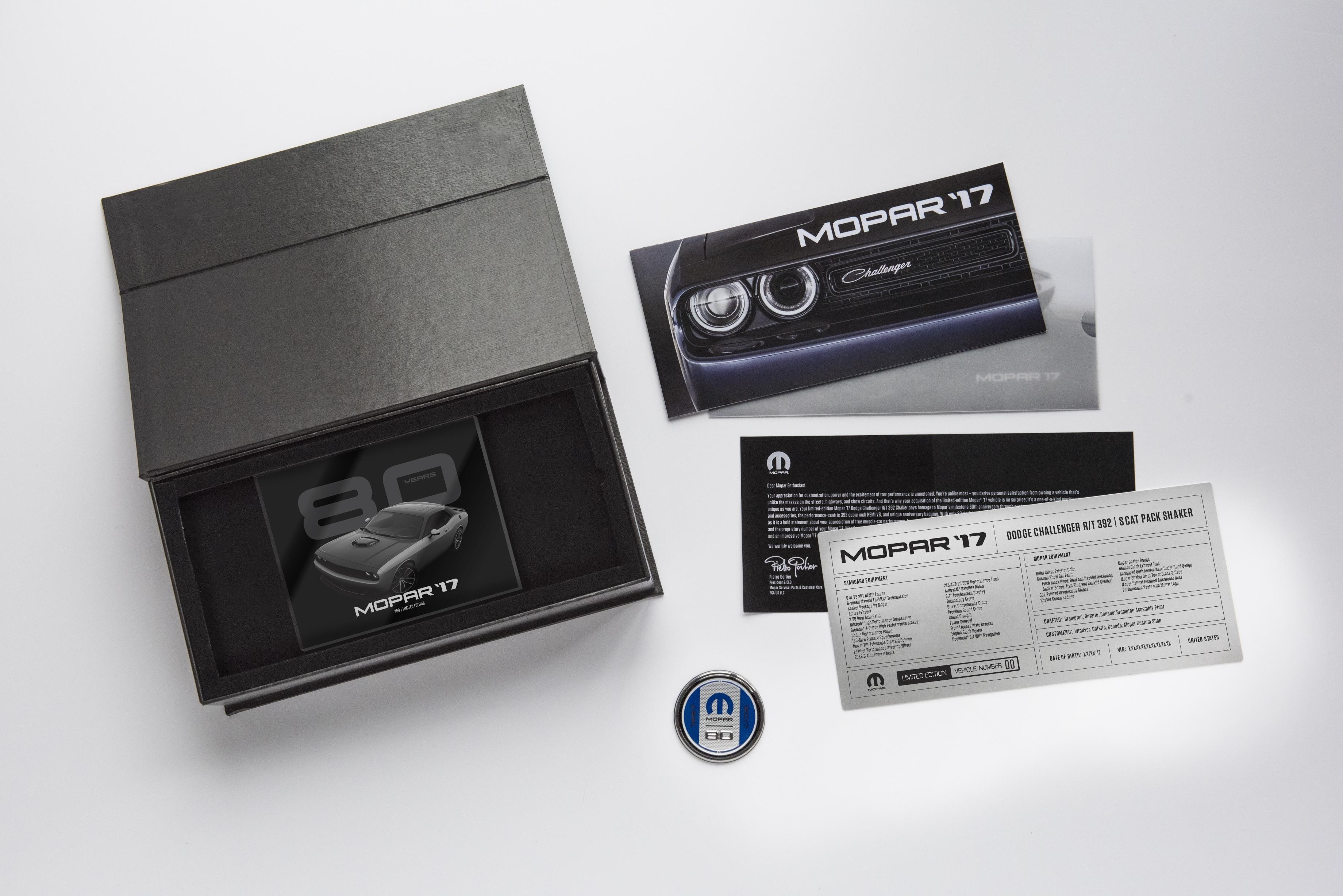 Priced at $55,790 MSRP, the limited edition Mopar ’17 Challenger comes with a 6.4-liter, 392 HEMI engine developing 485 horsepower and 475 lb.-ft. of torque.