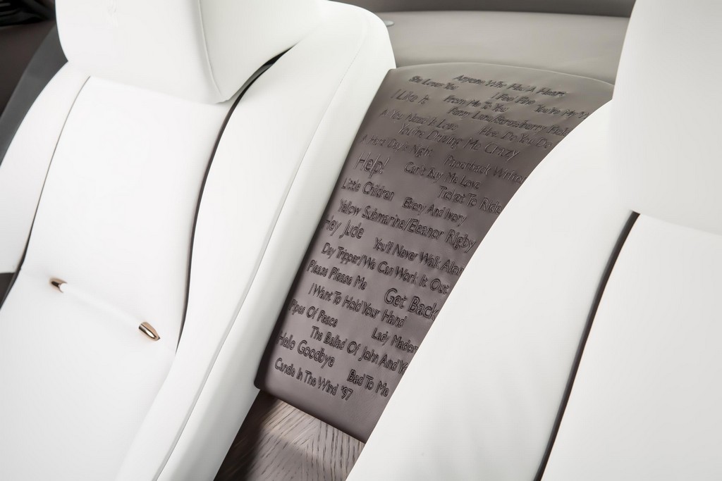 Songwriter and producer Giles Martin has created a tribute to his father, Sir George Martin, the famous record producer who was dubbed ‘the Fifth Beatle’ by Sir Paul McCartney. This tribute celebrates Sir George’s 30 number-one hit singles with design features that include embroidery of each song title in the rear cabin leather waterfall, and the producer’s signature stitched into the headrests. In celebration of the format with which Sir George made his mark upon the music world, the two copper door-flights feature an engraved quotation – “The recording is not what one hears, but what one must make others hear” – and the other, engraved details from the original handwritten arrangement for ‘Yesterday’ by The Beatles.