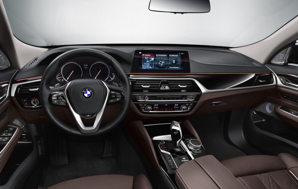 2018 BMW 6 Series Gran Turismo also benefits from the latest iDrive system, complete with the Touch Controller on the centre console and the Control Display with a 10.2 inch screen. It accommodates BMW Connected services such as Real Time Traffic Information that indicates the presence of tailbacks and slow-moving traffic, On-Street Parking Information helps to find available parking spots at the side of the road, and the Remote 3D View function allows drivers to view live images of their car and its immediate vicinity on their smartphone. Smartphone is integrated wirelessly via Bluetooth and inductive charging is also possible.