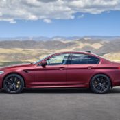 That unique and special paint work is called Frozen Dark Red Metallic. On 2018 BMW M5 First Edition the color is paired with BMW Individual high-gloss Shadow Line trim with extended features – gloss black kidney grille, the M gills and the four tailpipes of the sports exhaust system. These components are complemented with a set of 20-inch seven-double-spoke light-alloy wheels in black.