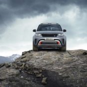 Visually, this ‘preview’ version of the Disco SVX features unique front and rear bumpers with protective skid plates and exposed Rush Orange-finished metal recovery eyes, satin Tectonic Grey paint finish, Narvik Black side vents with V8 badging, a Narvik Black Dynamic grille, Black roof rails and a roof-mounted unit with two additional light pods. The production models will be a little tamer than this.