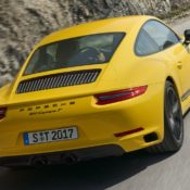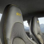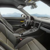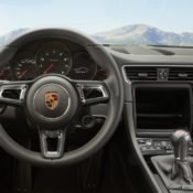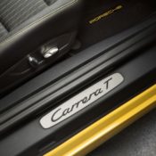 Other ‘pure’ features of the Porsche 911 Carrera T include a shorter rear axle ratio and mechanical differential lock, and lighter weight. This model comes with rear window and rear side windows made from lightweight glass, and sound proofing materials have been drastically reduced. What’s more, Porsche has removed the Porsche Communication Management (PCM) and the rear seats, but if you ask they put them back in at no cost. The 911 T also gets PASM sports chassis as standard, lowered by 20 mm, the weight-optimised Sport Chrono Package, a shortened shift lever with red shift pattern and Sport-Tex seat centres. In all, the 911 Tis 20 kg lighter than the standard version.