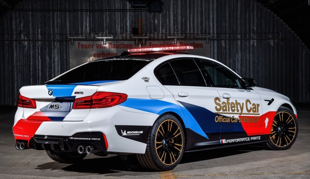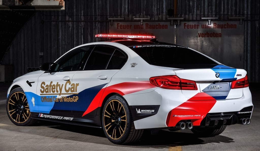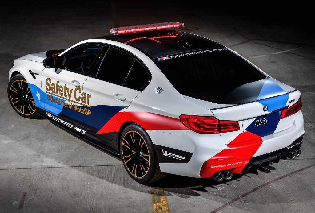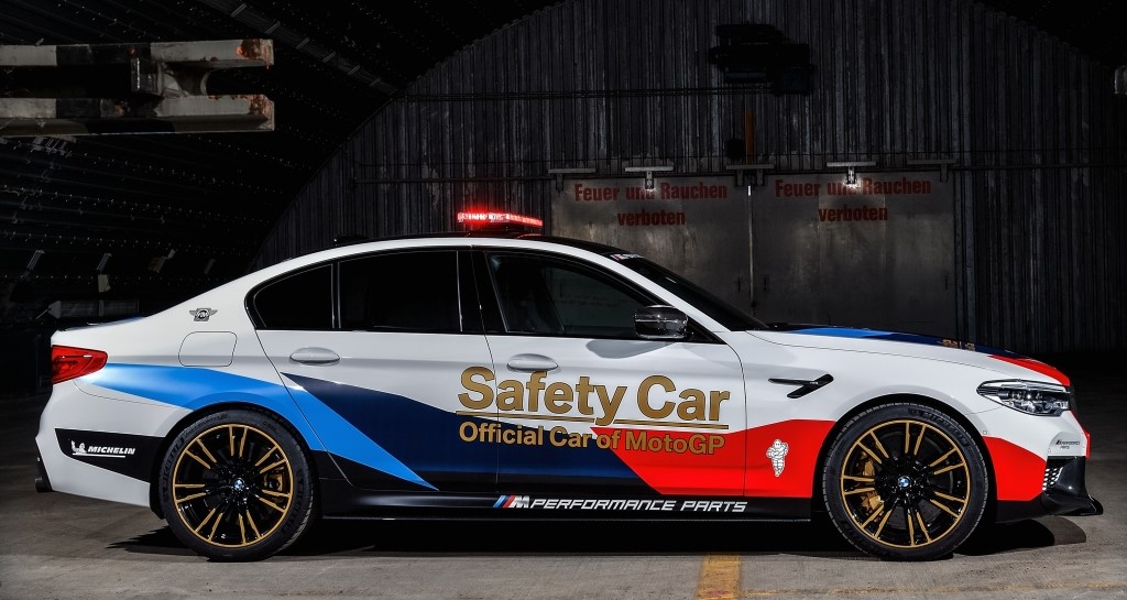 2018 BMW M5 MotoGP Safety Car looks so good, it could distract the riders following it on the formation lap. The car also has the guts to keep up with those superbike monsters. The new M5 is powered by a 600 hp and 750 Nm V8 motor and benefits from M-specific all-wheel drive M xDrive. The super sedan only needs 3.4 seconds to accelerate from 0 to 100 km/h. What’s more, the safety car is fitted with M Performance parts such as side sills, rear diffusor, rear spoiler, front kidney grille, door mirror caps and air breather slats for improved aero and handling.