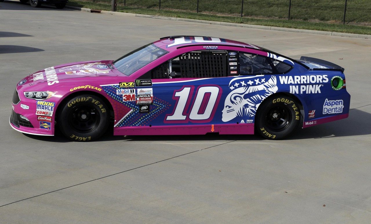 This past weekend, at the Monster Energy NASCAR Cup Apache Warrior 400 at Dover International Speedway, the world’s most famous female racing driver took the wheel of a special race car for a special cause. Danica Patrick‘s No.10 Ford Warriors in Pink Fusion race car boasted a pink delivery designed for Breast Cancer Awareness month.