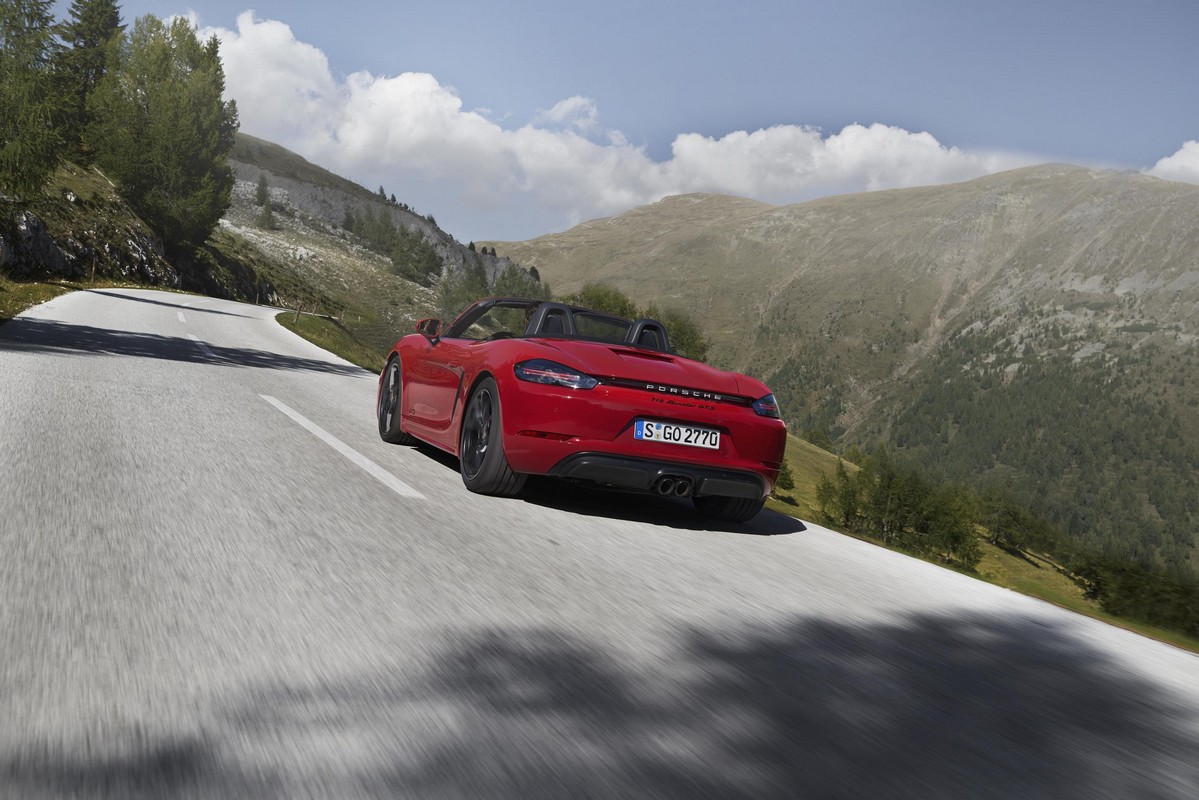 The power increase in the 2018 Porsche 718 GTS is 15 hp more than the 718 S and 35 hp more than the 718. The 365 horsepower you get now is the result of employing a newly developed intake plenum and an optimized turbocharger for the 2.5 liter flat-four cylinder engine. Standard transmission is a six-speed manual, but a seven-speed Porsche Doppelkupplung (PDK) is also available as an option.