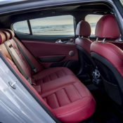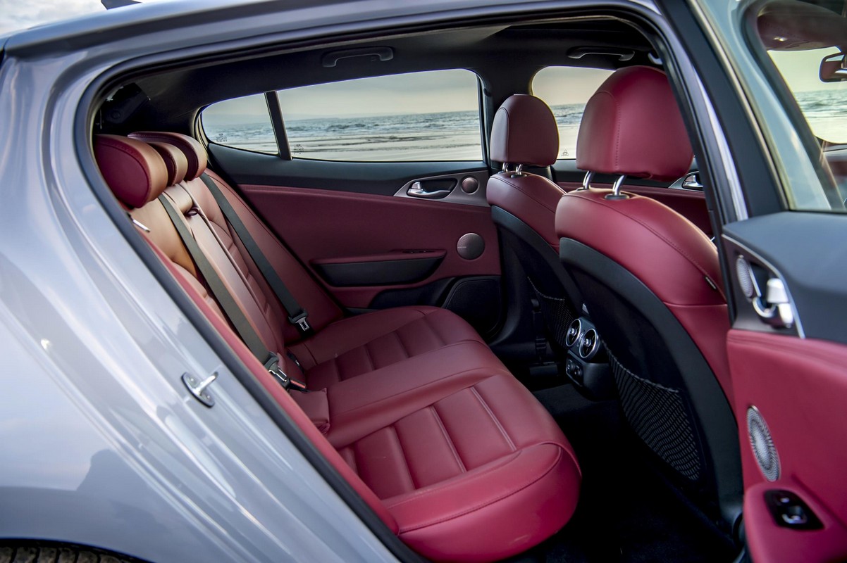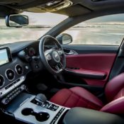 What all versions of the Kia Stinger share include an aerodynamically brilliant design with many sporty highlights such as large intakes and swollen arches. You get 18-inch alloy wheels on GT-Line and GT-Line S versions and 19-inch wheels on GT S. The choice of colors include some nice options such as ceramic grey, chroma red, and micro blue. The interior is practical for five adults, and features leather in GT-Line and GT-Line S versions, and Nappa leather in GT S. There’s an 8.0-inch touchscreen for the navigation and infotainment system, and leather door armrests, D-shaped steering wheel and gearshifter.
