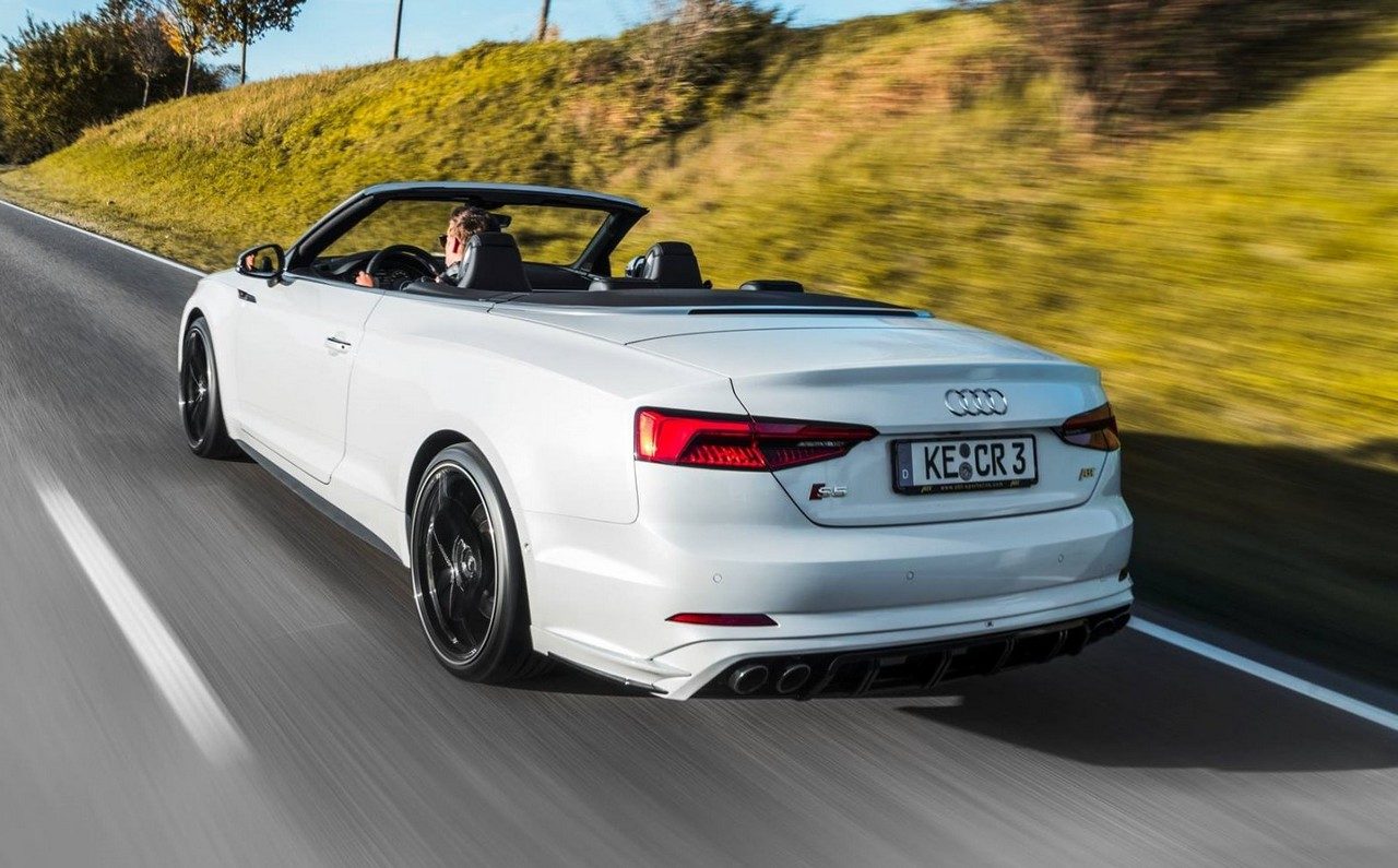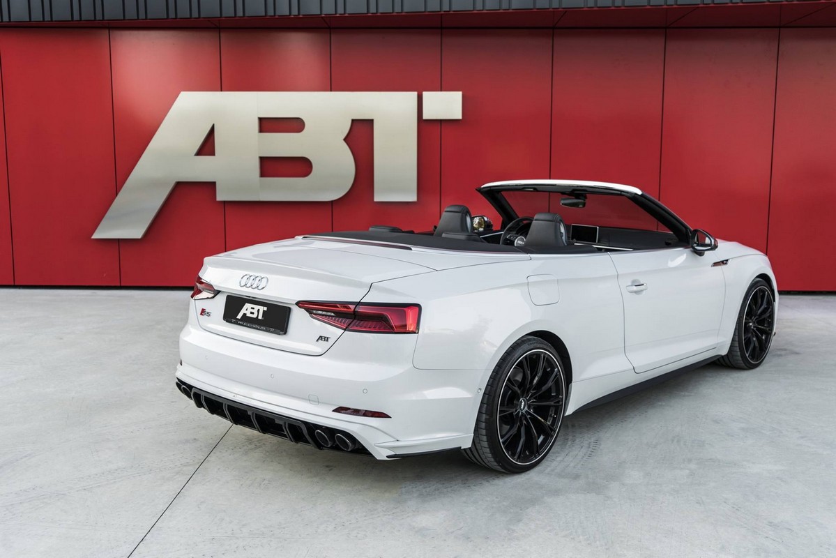 The 2018 ABT Audi S5 covers all variants of the car including Sportback, Coupe and Convertible. The latter is our favorite because it is all the car you ever need. It has four seats, an open top, four-wheel-drive, a great interior, comfy ride, and stellar performance. The ABT treatment improves some of those aspects with an eye towards sportiness. So the body is garnished with aero parts, the suspension lowered, and the wheels increased in size.